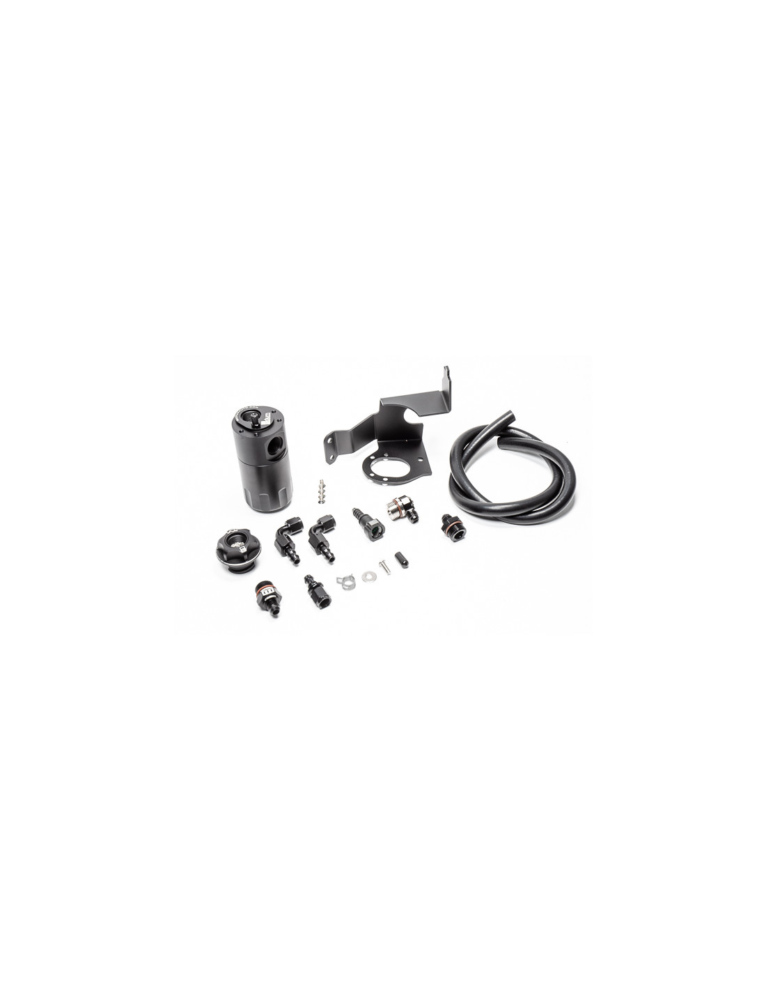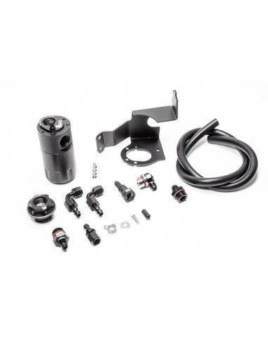 Engine vents through the included billet aluminum oil fill cap (with PCV valve) and into the catch can, then the air travels to the intake manifold. This closed loop system is effective at keeping crankcase blow-by oil and contaminants out of the intake manifold/blower on the CTS-V. Kit includes all fittings, hoses, brackets, etc. for an easy bolt-on installation.