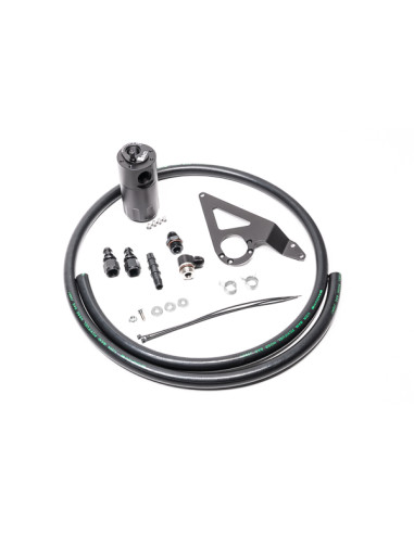 Catch can kit for the Toyota 86, Subaru BRZ. Installs in LH side of engine bay and interfaces with the crankcase ventilation hose.