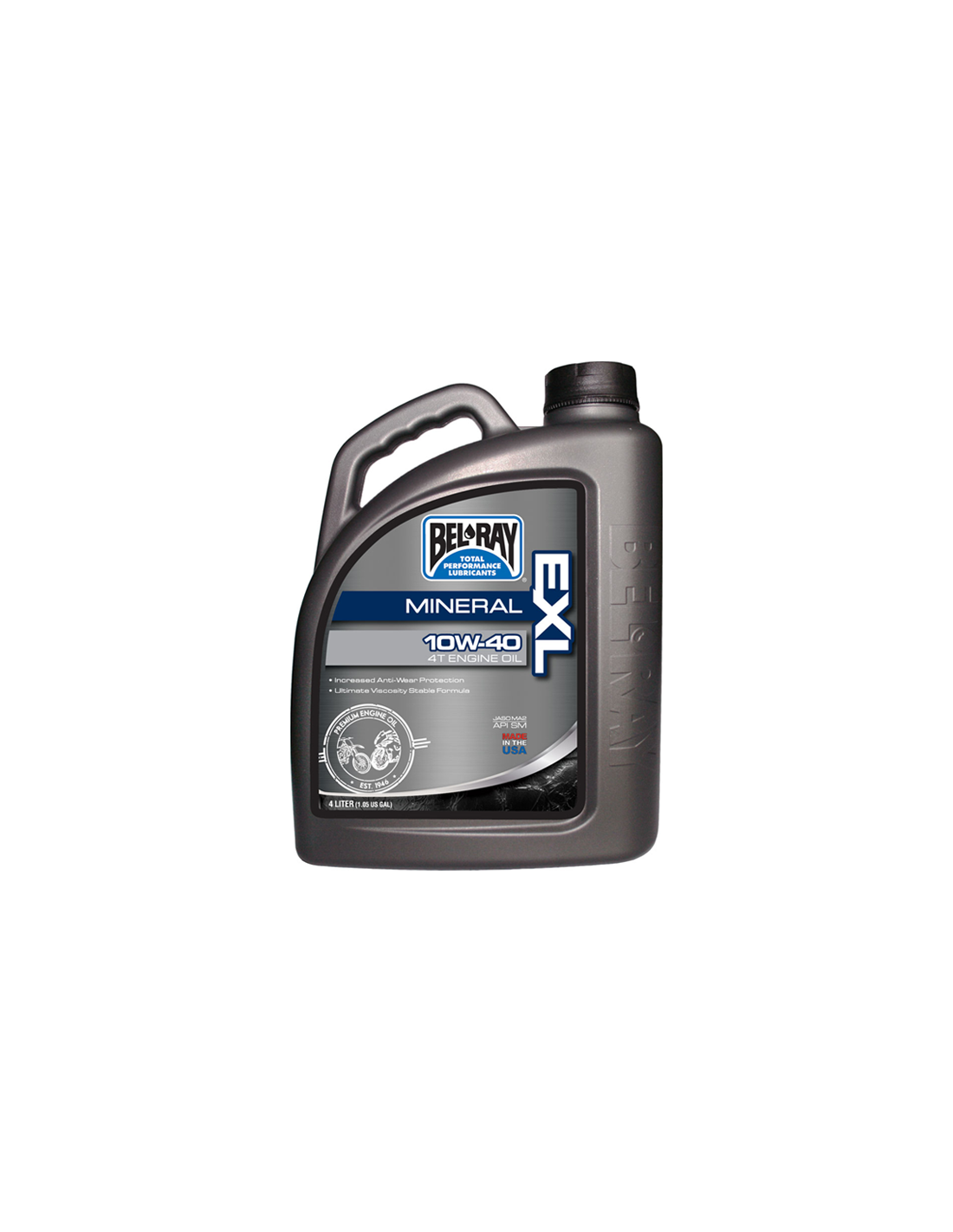 BelRay EXL Mineral 4T motorolja är en premie multi-grade motorolja för 4-takts motorcykel motorer. EXL Mineral 4T motorolja uppfyller eller överträffar prestandakraven för API SM och JASO MA2. Den är lämplig för luftkylda eller 4-taktsmotorer vätskekylda och våt kopplingar. För användning i alla 4-takts motorcyklar med eller utan våta kopplingar inklusive de specificerar användningen av en JASO MA / MA2 kvalificerad olja. Ger kostnadseffektiv, överlägset skydd prestanda och tillförlitlighet året om.