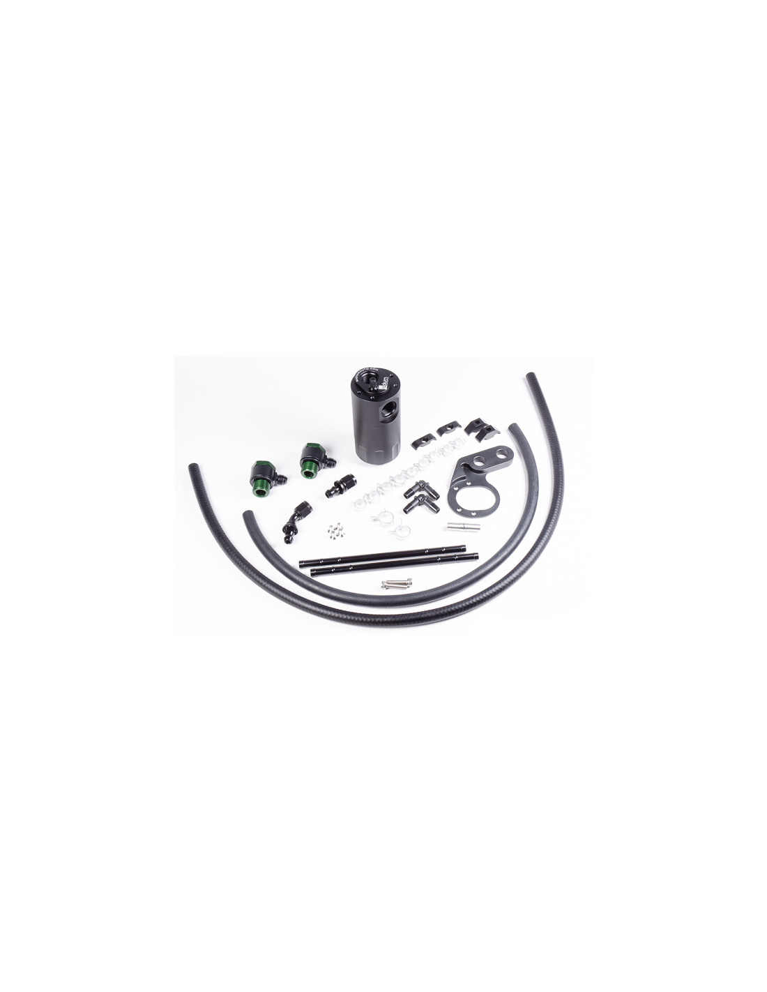 Single catch can kit that installs in the crankcase ventilation line. Includes CNC machined catch can, specilized mounting bracket, and all fittings and hardware necessary for easy installation.