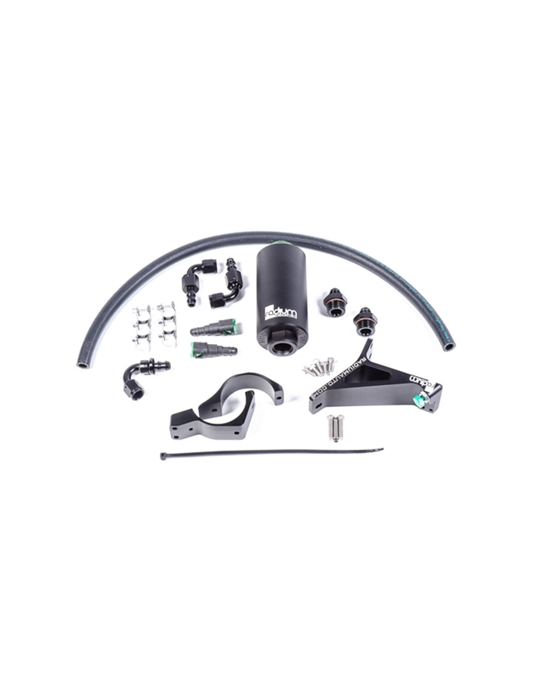 This kit includes a master clyinder brace and fuel filter. The filter replaces the OEM fuel filter and mounts directly to the master cylinder brace. Fittings and hoses are included for easy hook up.